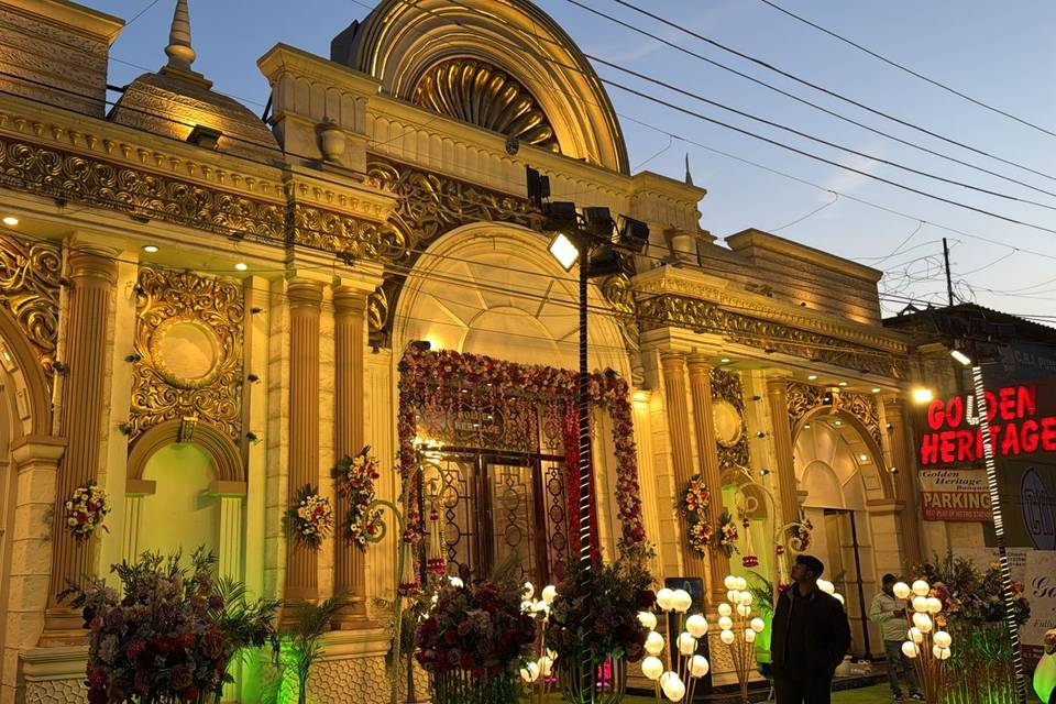 (9)· Sahibabad, GhaziabadPeek insights into the ravishing Golden Heritage Banquet Golden Heritage Banquet is a charming banquet hall in Ghaziabad...Read more that has all the modern amenities to facilitate your wedding. At the Golden Heritage Banquet, the ambience of the hall exudes luxury and warmth, featuring tasteful décor and ample...