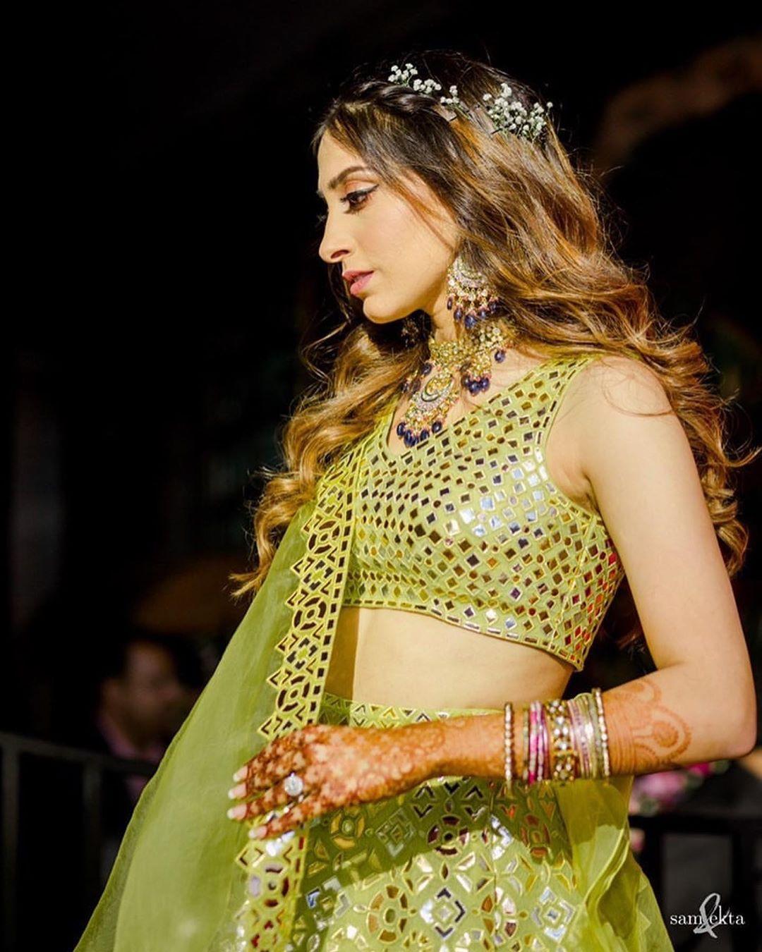 The wedding had a beautiful mirror mandap and pastel flowers whereas the reception flaunted some more of greens with arch structures that made it all the more attractive and photogenic.