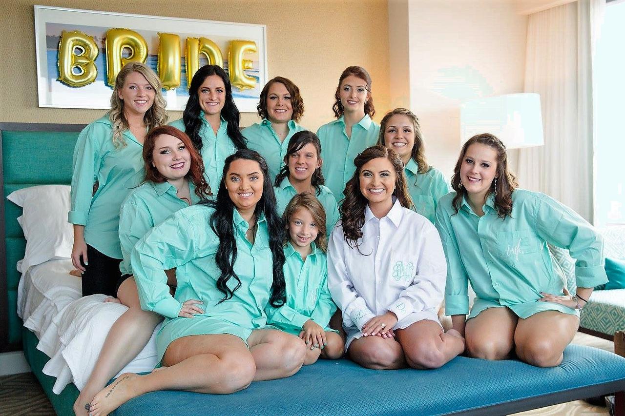 One of the best bachelorette party shirt ideas for you is to get monogrammed shirts that have your group’s name or the bride’s initials on them. You can either get trendy patches made for light blue shirts or have the monogram stitched onto the outfit.