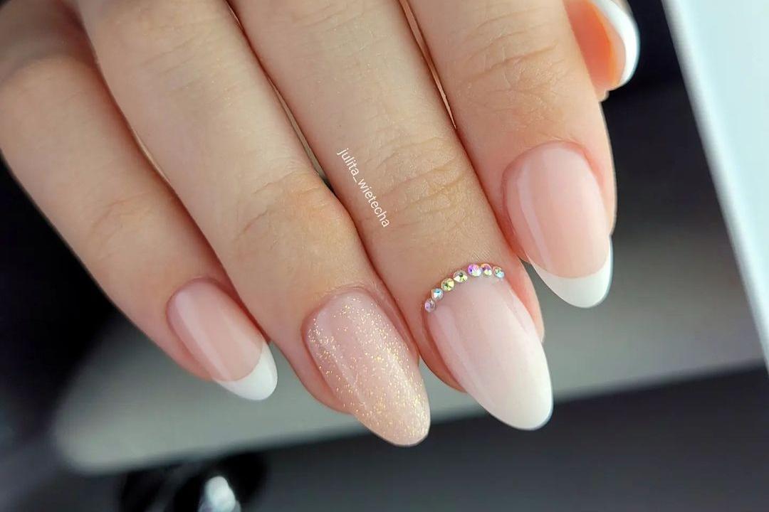Nude and pink nails shout elegance. And when mixed up with a hint of chunky glitter, it can give you a wedding-worthy nail look.