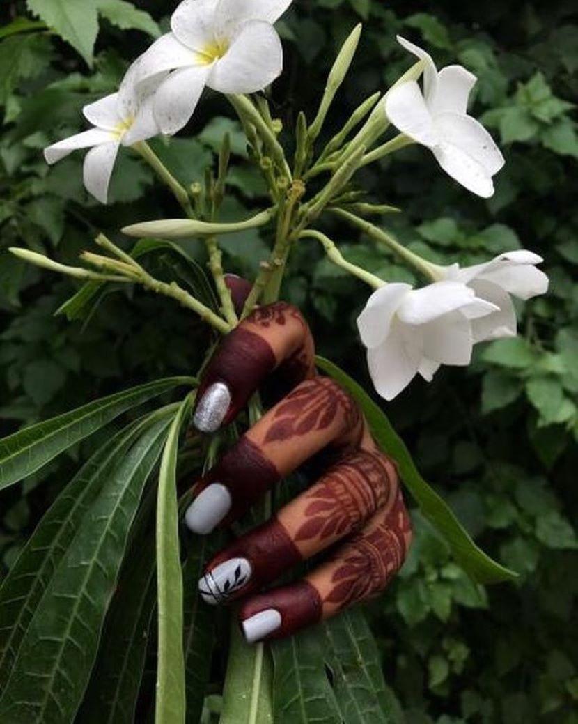 If you also want to go with white as the base, we assure you, it will look beautiful against your mehndi clad hands.