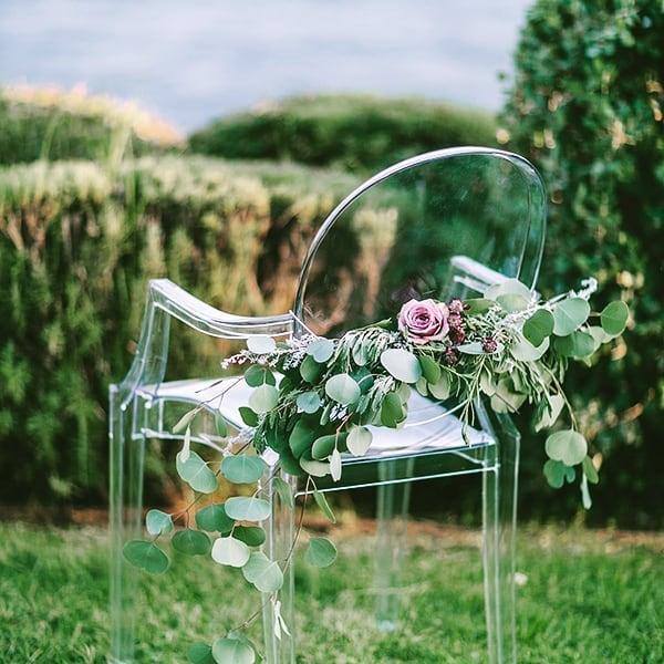 Other ways of decking these chairs up are to print the guest's name. Instead of using place cards at your wedding to make the seating arrangement visible, your chair customisations could direct your guests to their respective seats. The bride and groom's ghost chairs can be decorated with the flowers or foliage decor of their choice. You could also opt for your favourite flowers or other elements to add a personal touch to the chairs.