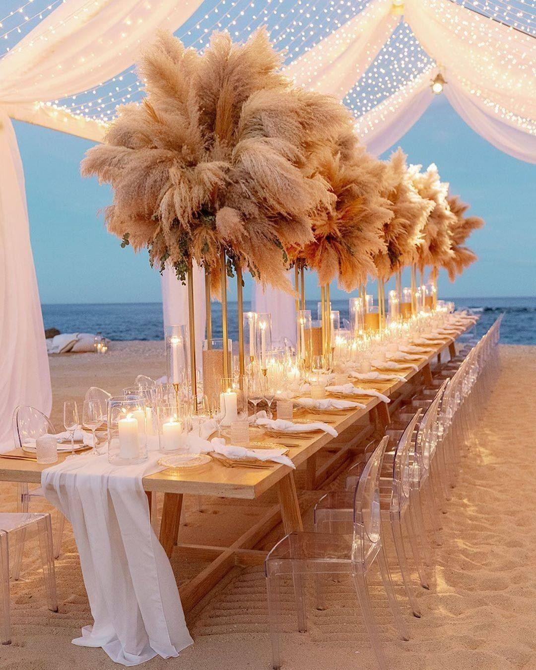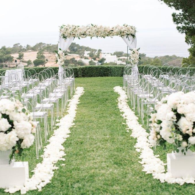 For couples who plan an outdoor ceremony, the reason most often is that they are in love with the scenic beauty and the natural light and fresh air. To keep this scenic beauty unhindered by too much furniture, you can pick ghost chairs for your wedding seating. The transparent nature of these chairs makes sure that you get a clear view of the venue.