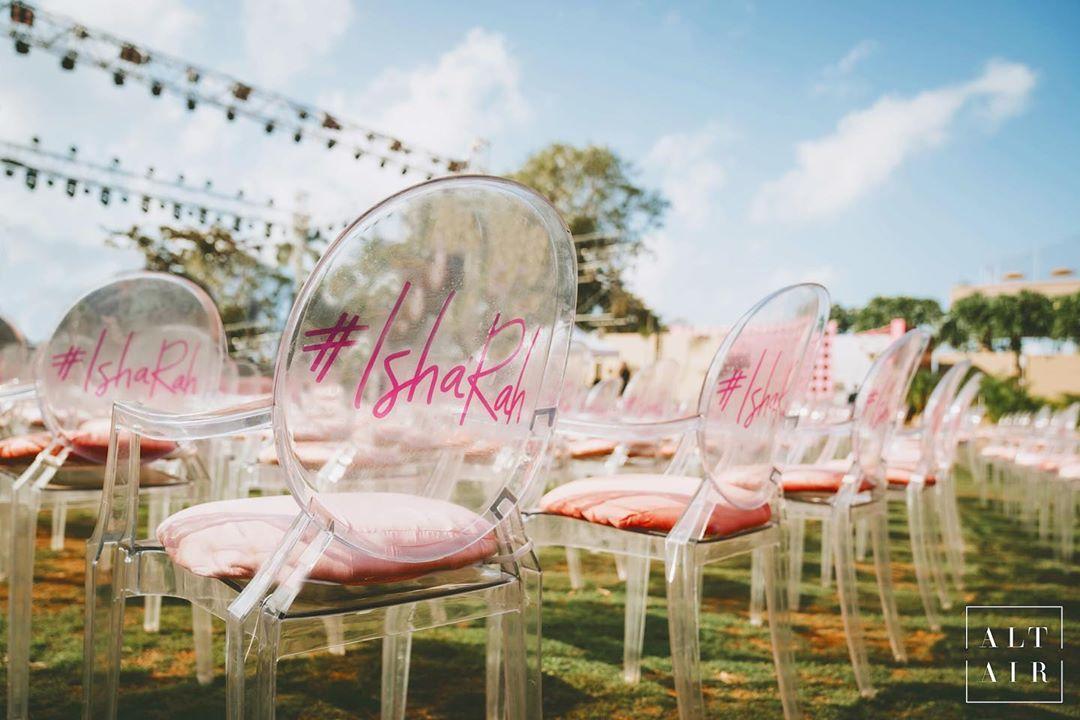 Most pre-wedding ceremonies in India that lead up to the wedding are very colourful. Be it the Haldi ceremony or the Mehndi ceremony - the decor is always known to be bright and colourful. These transparent chairs can still be your go-to because you can stylise them and add elements of decor according to your theme.