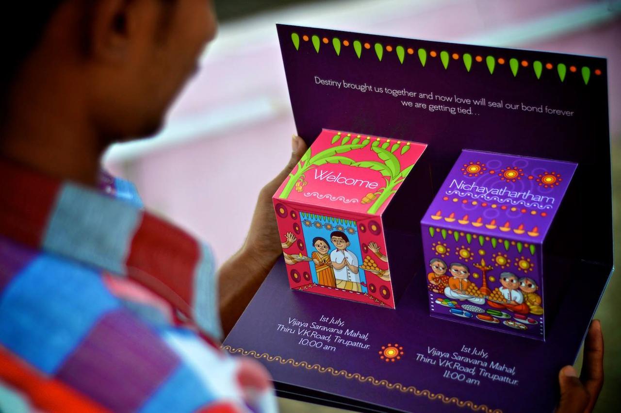 Choose elegant, traditional and glamorous wedding card designs for a truly one of a kind feel. We handpicked some Indian wedding card designs just for you: