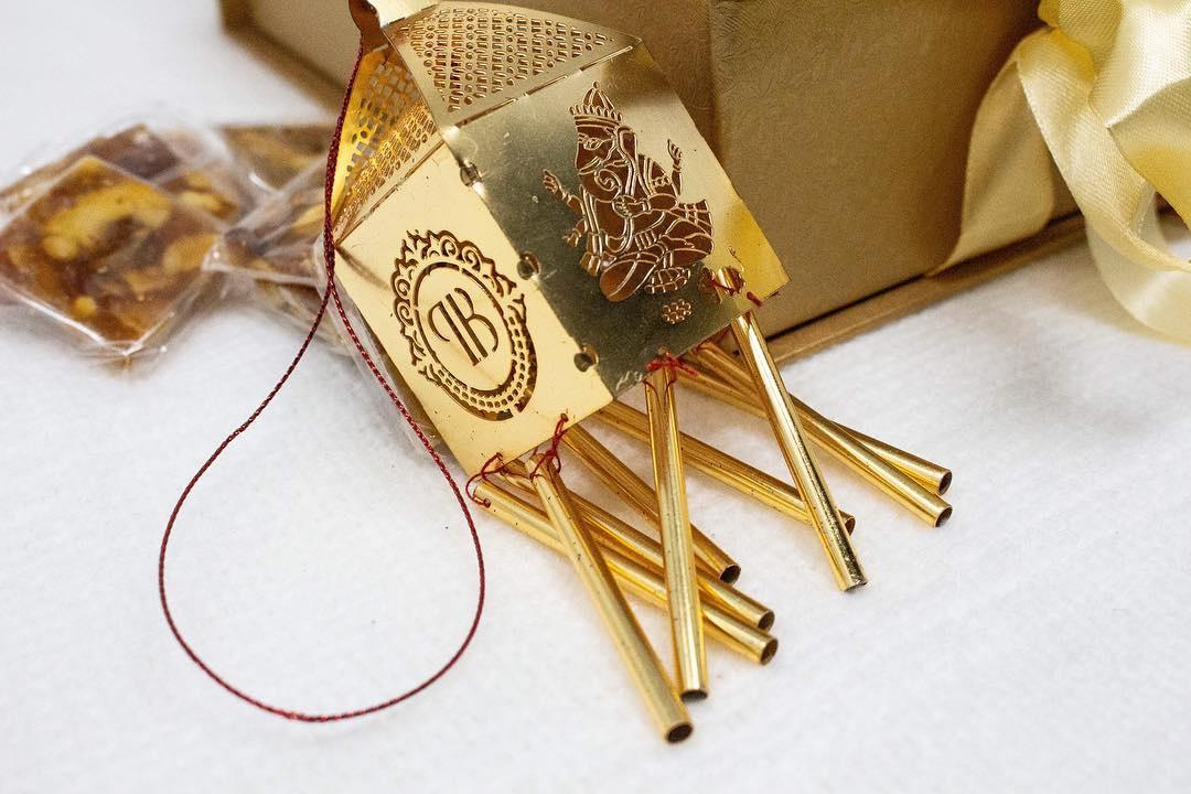 In India, we celebrate each and every part of the wedding fiesta. There is always something or the other that we love to add in the wedding invitation that makes it looks more authentic. We also give some add-ons along with the card and it can be given with Indian wedding card designs as wedding favours like Roli, rice, Sindoor, dry fruits, and sweets. It is a tradition of sending wedding invitation with such things to make it more auspicious. In India, we invite the guests with a traditional spirit which is incomplete if we send the wedding card alone. So, if you are getting married you must consider this.