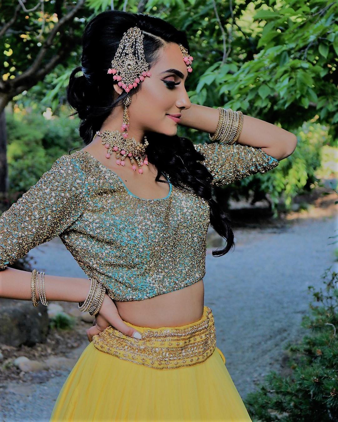 It is ideal to pair with a yellow or blue bridal outfit, as the jewellery will be in perfect contrast with the attire.