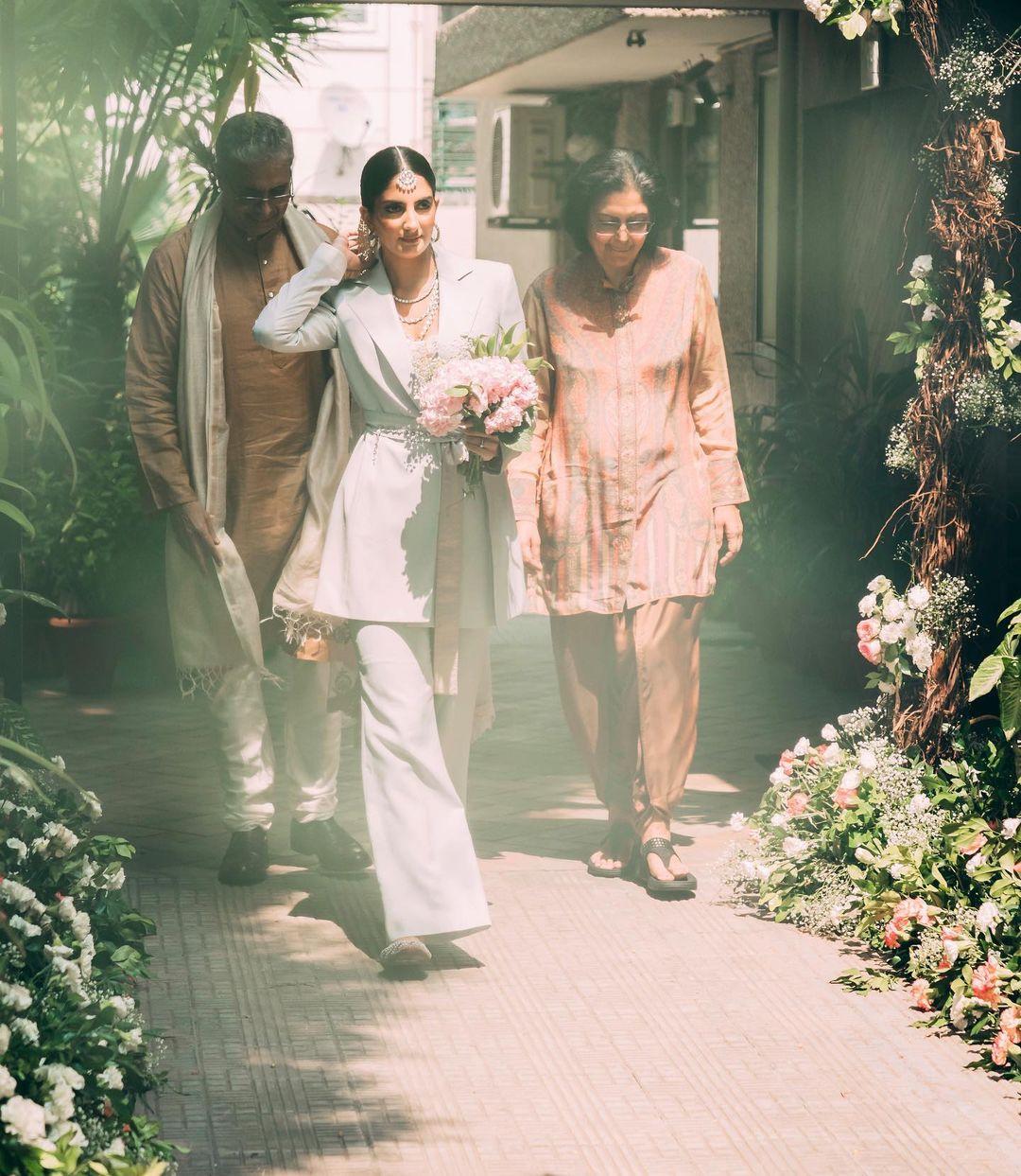 Did you notice the bride in a blue pantsuit? Oh yes, she has won our hearts and set some unreal fashion goals by picking this pastel blue pantsuit for her big day paired with a veil and perfect juttis!