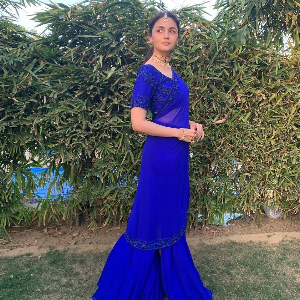 This eclectic blue sharara saree by Manish Malhotra has become a big hit ever since Alia Bhatt decided to wear it at one of her close friend's wedding ceremony. New saree images like this one look elegant, classy, and are like a breath of fresh air.