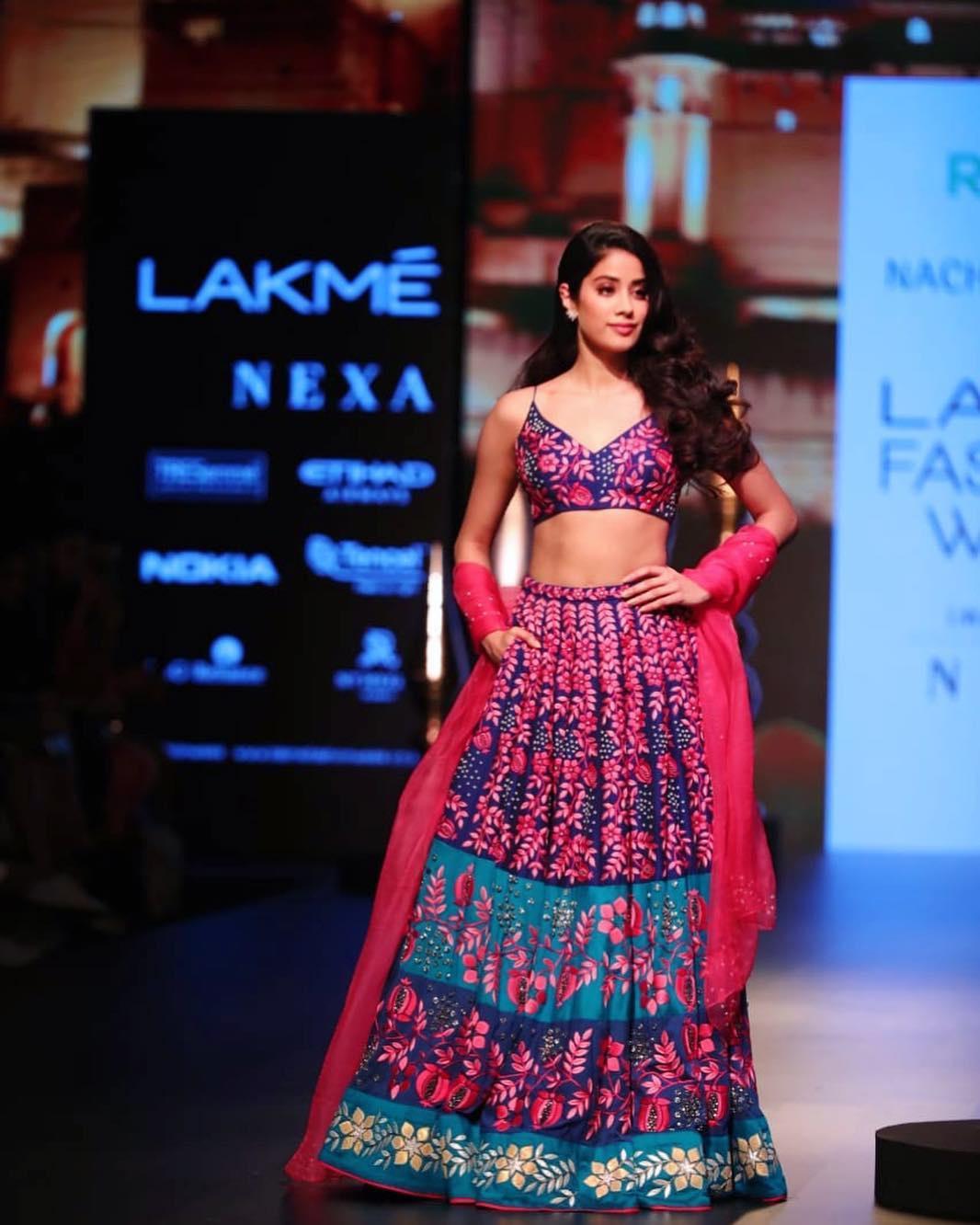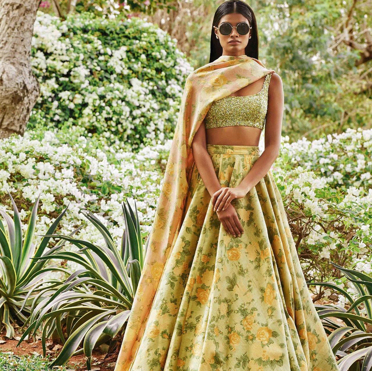 As you curate your wedding wardrobe, place your bets on a printed top design as it’s guaranteed to add some chic and ethereal vibes to your attire. If you would like your outfit to pay homage to various flowers and patterns, check out this strap number that Jhanvi Kapoor rocked at the Lakmé Fashion Week.